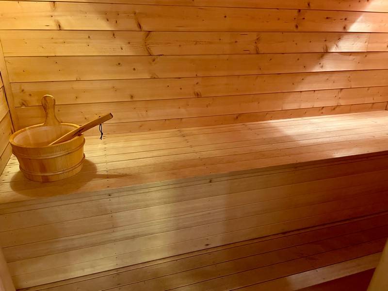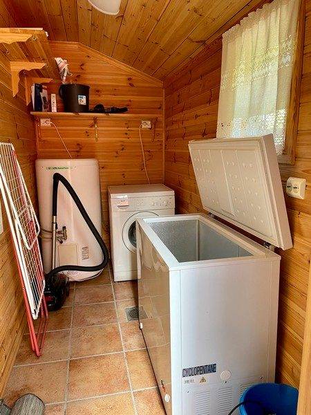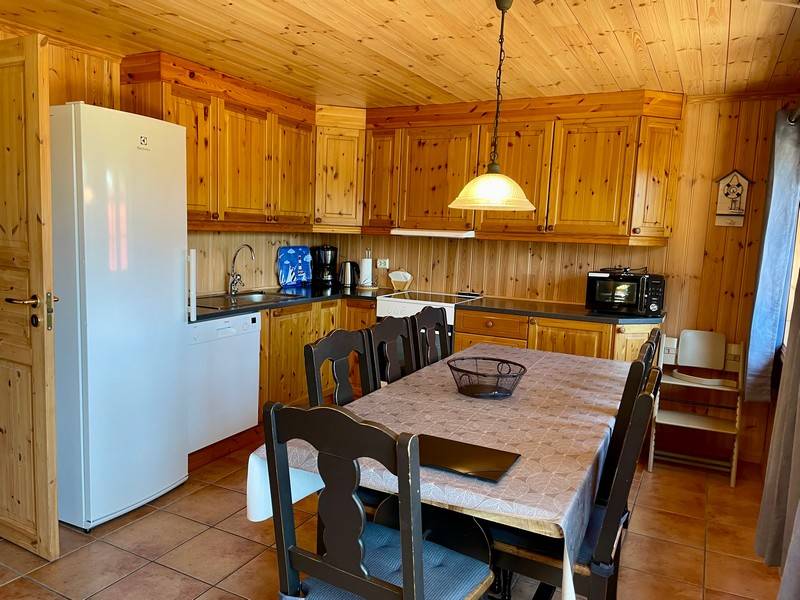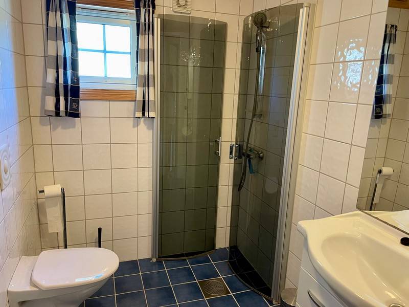 Komplett ausgestattete Küche zur Selbstverpflegung. Badezimmer mit WC, Dusche, Fußbodenheizung und Sauna. Zusätzliches, separates WC.