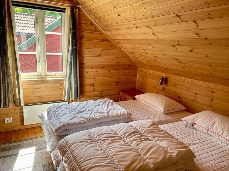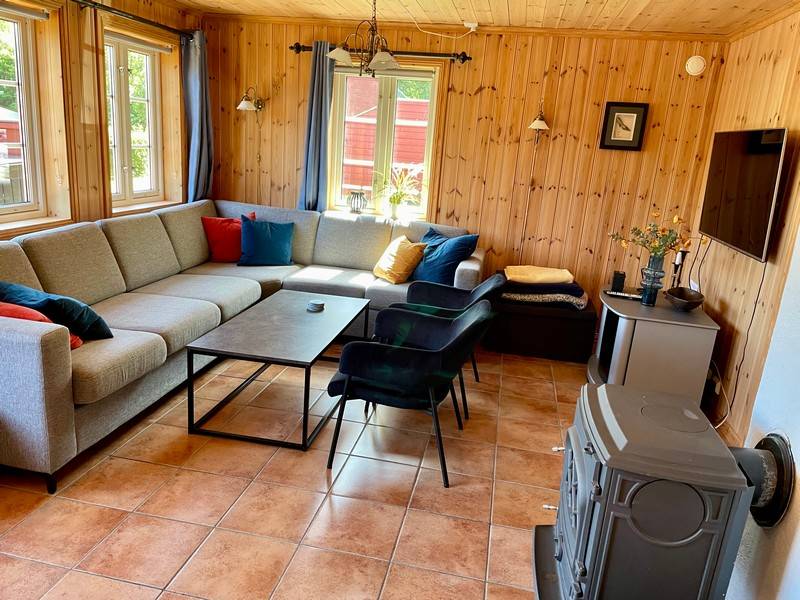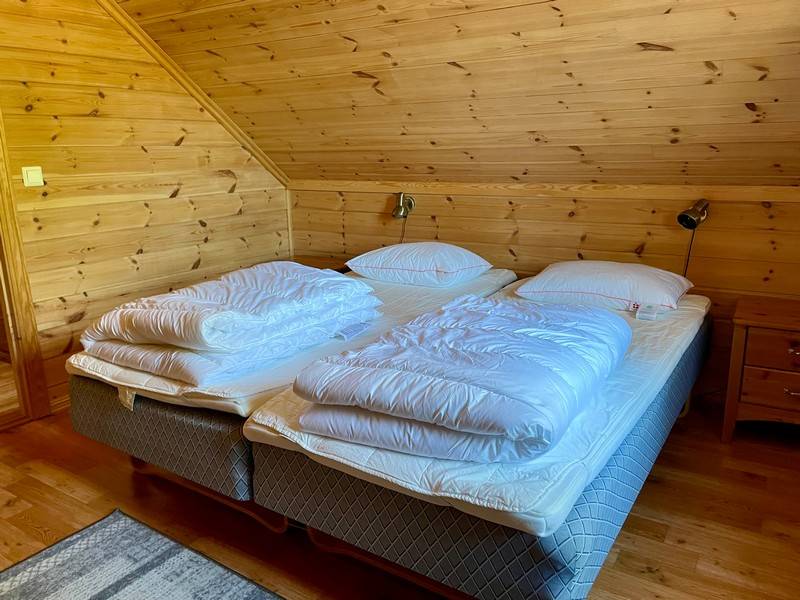 Ferienhaus für bis zu 8 Personen, mit insgesamt 4 Schlafräumen (jeweils mit 2 Einzelbetten, welche zu Doppelbetten zusammengestellt werden können), Wohn- und Essbereich mit TV, WLAN, Heizung/Brennofen und Esstisch