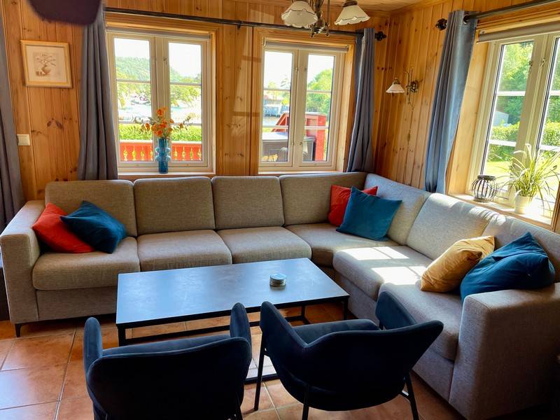 Abstellraum mit Gefriertruhe und Waschmaschine, sowie eigene Terrasse mit Gartenmöbeln, Grill und Fjordblick. Haustiere sind in dieser Unterkunft nicht erlaubt.
