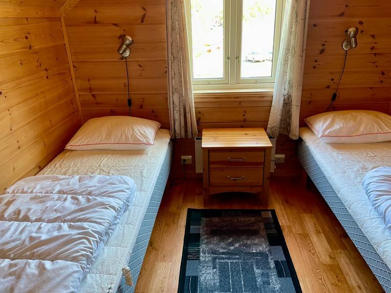 Ferienhaus für bis zu 6 Personen, mit insgesamt 3 Schlafräumen (jeweils mit 2 Einzelbetten, welche zu Doppelbetten zusammengestellt werden können), Wohn- und Essbereich mit TV, WLAN, Heizung/Brennofen und Esstisch